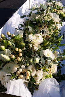 This weekend we provided some lovely bouquets and buttonholes for Gemma and James' wedding. They wanted a soft, romantic and instructured feel for their flowers which were all to be ivory and green with hints of black. Anenomes were featuring in the stationery, and hence had to be included (despite the fact that they didn't want to face the chilly weather!)