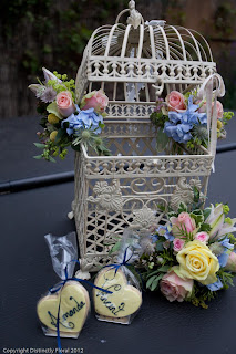 Starting with the vintage inspired flowers, we included bouquets for bride, bridesmaid and flower girl. We also designed a candelabra tablecentre, a mixed silver vase tablecentre, a Wishing Tree, a tableplan designed on a mannequin, a birdcage postbox and a tiered basket of confetti cones.