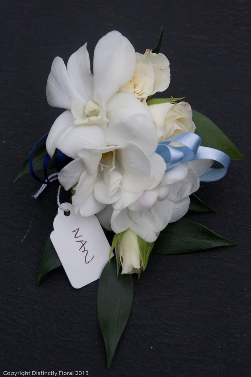 For the boys we used a cymbidium orchid for John along with a lemon ranunculus, and a single cymbidium orchid for the rest of the boys. Dendrobrium orchids were use for the Mums' corsages along with spray roses and detailing to match their dresses. We then provided wrist corsages for John's sisters and a smaller corsage for Nan. We also provided thank-you bouquets to match the wedding flowers.