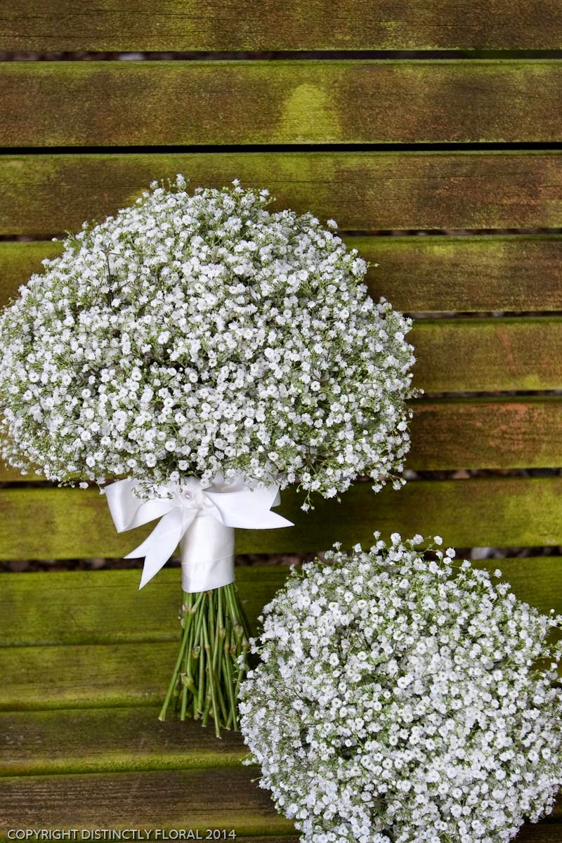 For Genevieve's adult bridesmaids, we decided on simple hand-tied bouquets of White Naomi ross interspersed with gypsophilia and rosemary sprigs. We then used the gypsophilia on its own for the Junior Bridesmaid and scaled it down further for her Flower Girl. So elegant yet pretty.